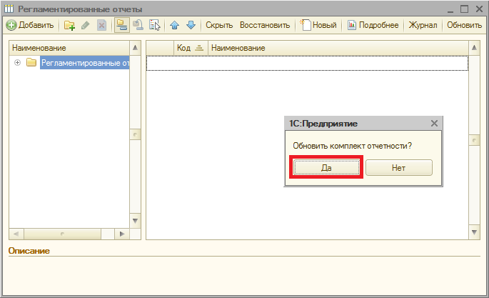 Нажимаем «Да» при выходе предложения обновить комплект отчетности: