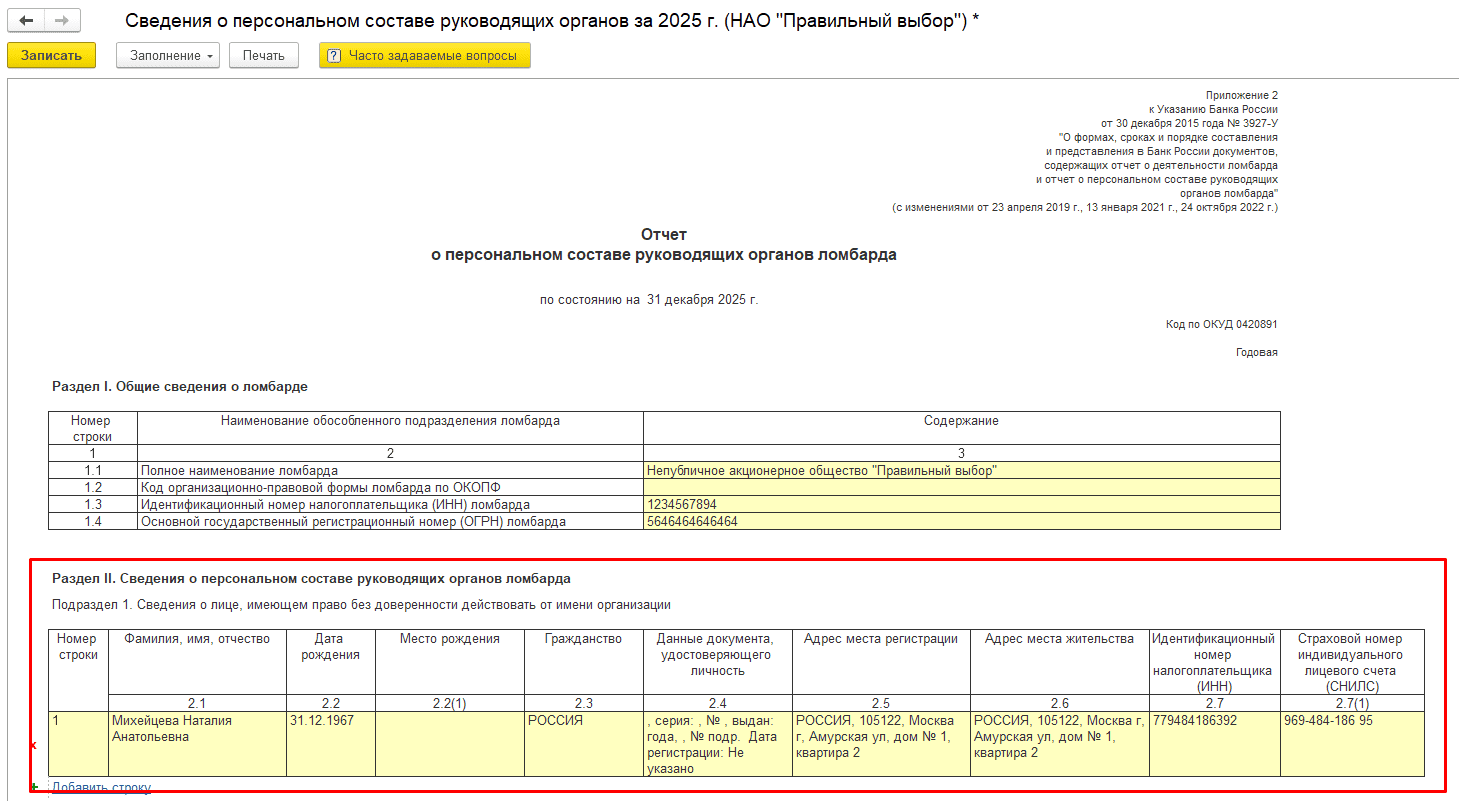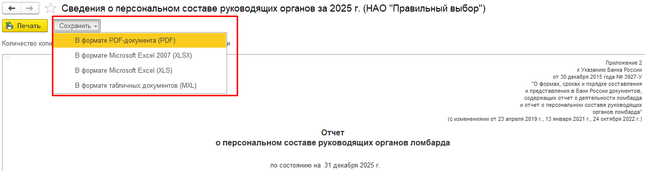 Как сформировать отчет о персональном составе руководящих органов ломбарда