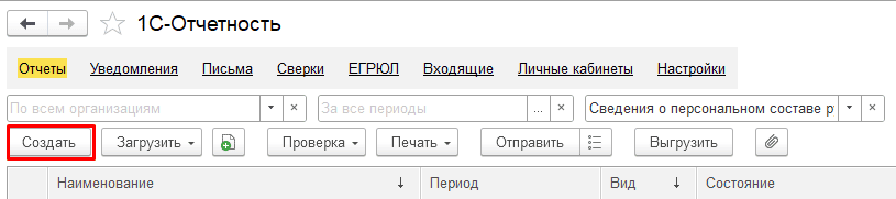 Шаг 3. Выберите организацию, период формирования отчета и нажмите на «Создать»: