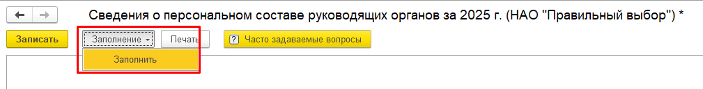 Основная часть отчета «Сведения о персональном составе руководящих органов» заполняется вручную. Автоматически заполняются сведения: