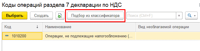 Подобрать код можно из классификатора. Для этого нажмем в поле «Код операции» на ссылку «Показать все», а затем на кнопку «Подбор из классификатора»: