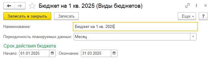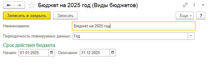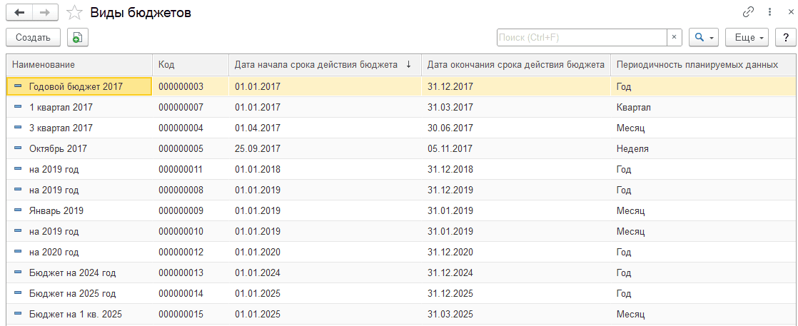 Для хранения перечня имеющихся бюджетов предназначен специальный справочник «Виды бюджетов».
