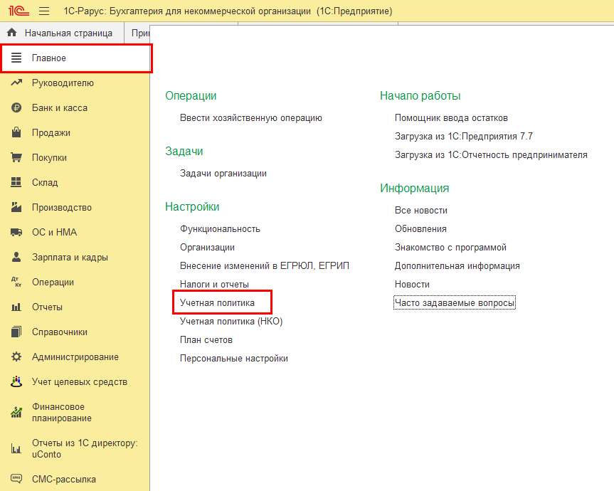 Рассмотрим Учетную политику организации (меню «Главное – Учетная политика»):