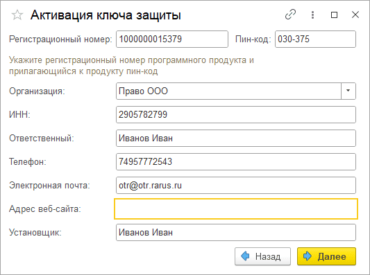 Введите данные по лицензии:
