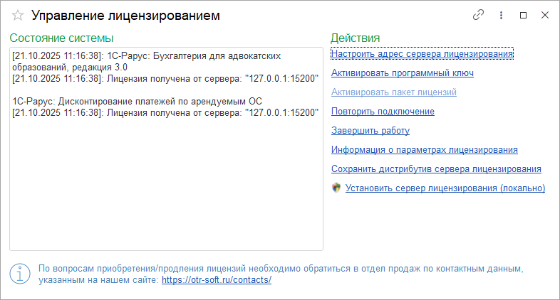 Лицензия на модуль успешно получена: