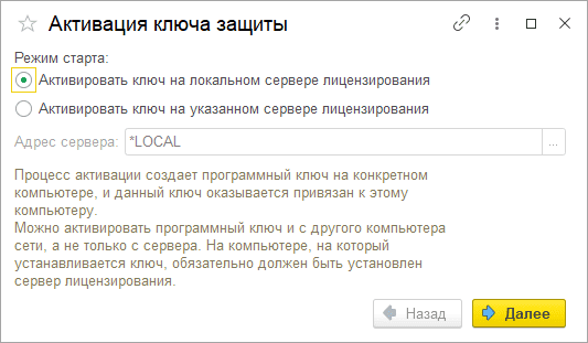 Для включения функционала необходима активная лицензия – откройте форму настроек подключения к серверу лицензирования по кнопке «Да»:
