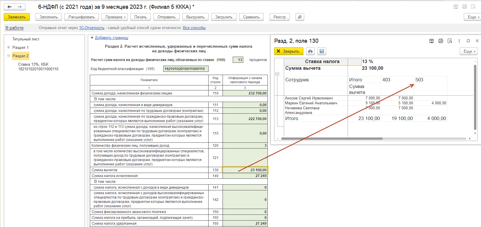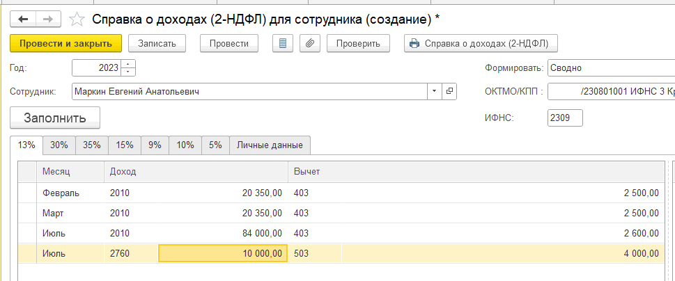 После внесения этих данных одним из предложенных способов необходимо вручную изменить код вычета на 503: