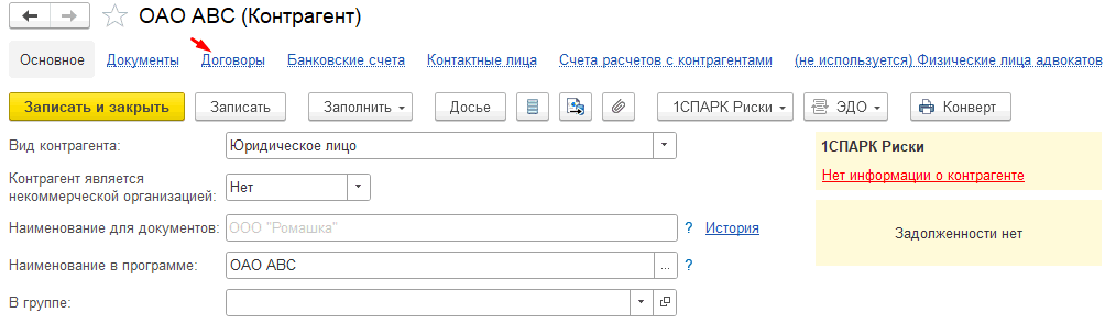 Создадим контрагента и соответствующее соглашение в у.е (меню «Адвокатская деятельность – Справочники – Контрагенты (доверители)»):