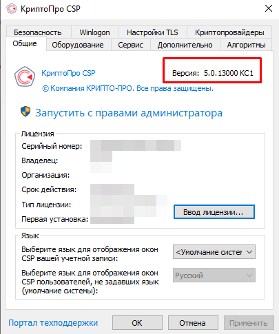 Чтобы узнать версию КриптоПро откройте «Пуск/Панель управления/КриптоПро CSP». На вкладке «Общие» найдите «Версия продукта».