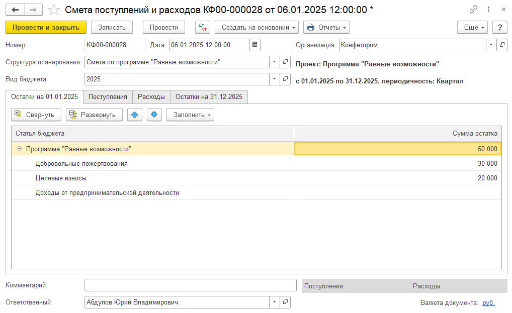 Предусмотрели создание отдельных смет на конкретные проекты/программы/мероприятия некоммерческой организации.