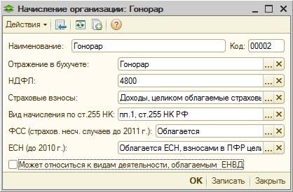 Предусмотрена регистрация начислений адвокатов с произвольной настройкой способов налогообложения: